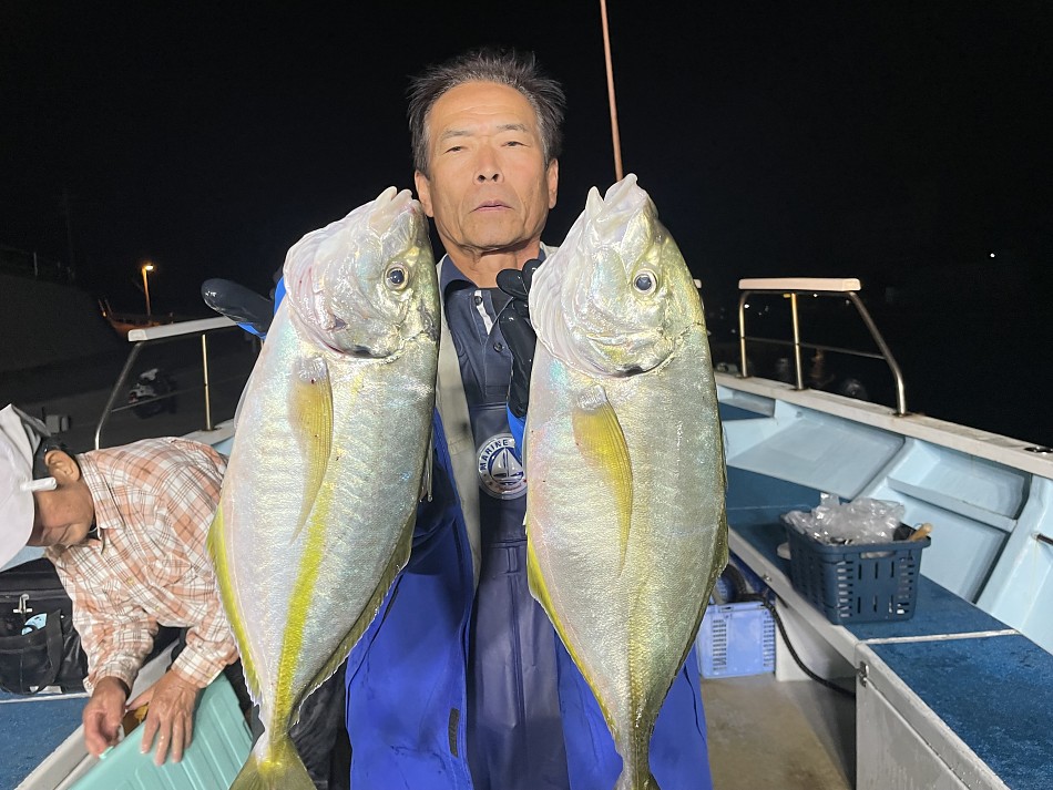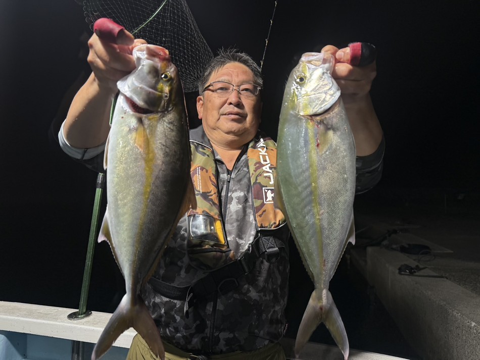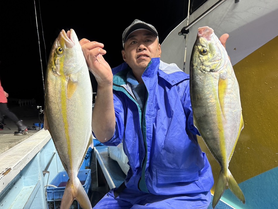 今日も絶好調(^^)真鯛最大70cmシマアジ、カンパチ、シオ、大ハマチは船中11本ハマチ、ツバスも釣れクーラーいっぱいでした!前半や後半どちらも大物強烈当たりありちょこちょこハリス切れもありました。ハリスは最低6号電動高速巻きはNGです。