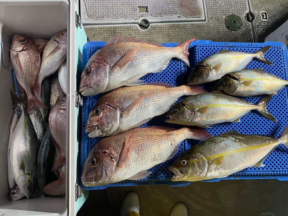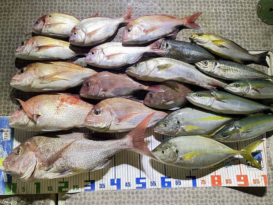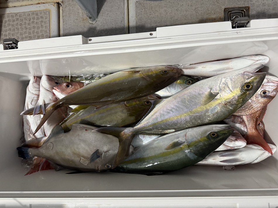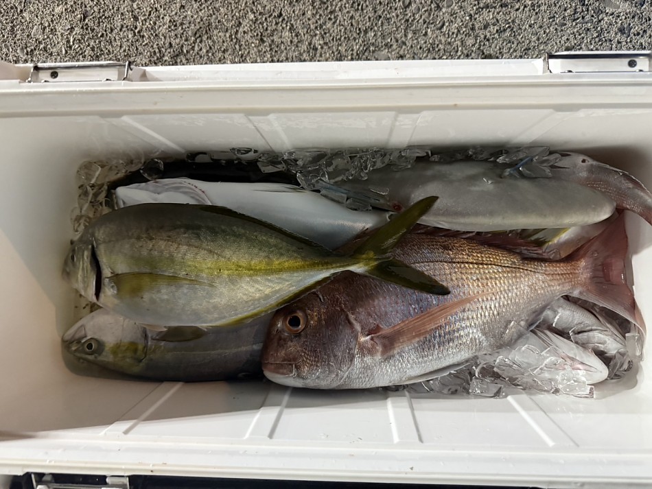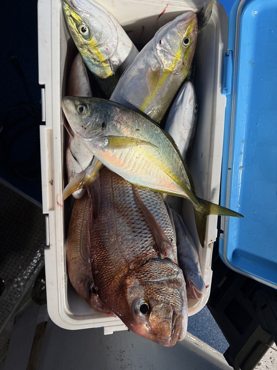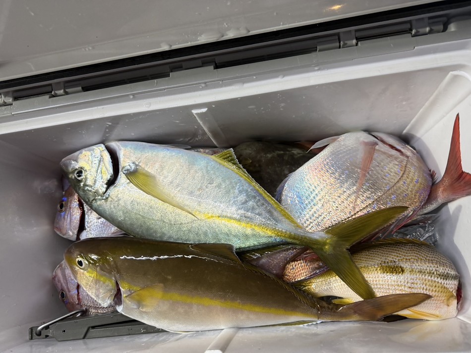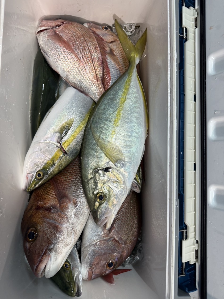 今日も絶好調クーラーいっぱいです(^^)カンパチ、シオ船中16本!シマアジ船中9本 GET!!良型真鯛も複数 GET!!明日まだ空きあります