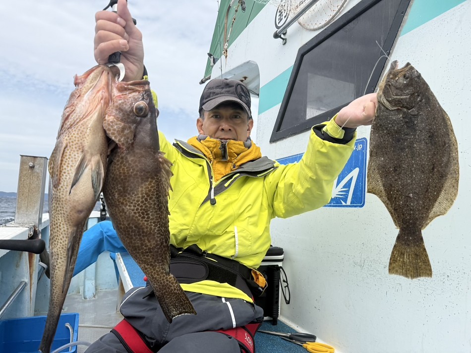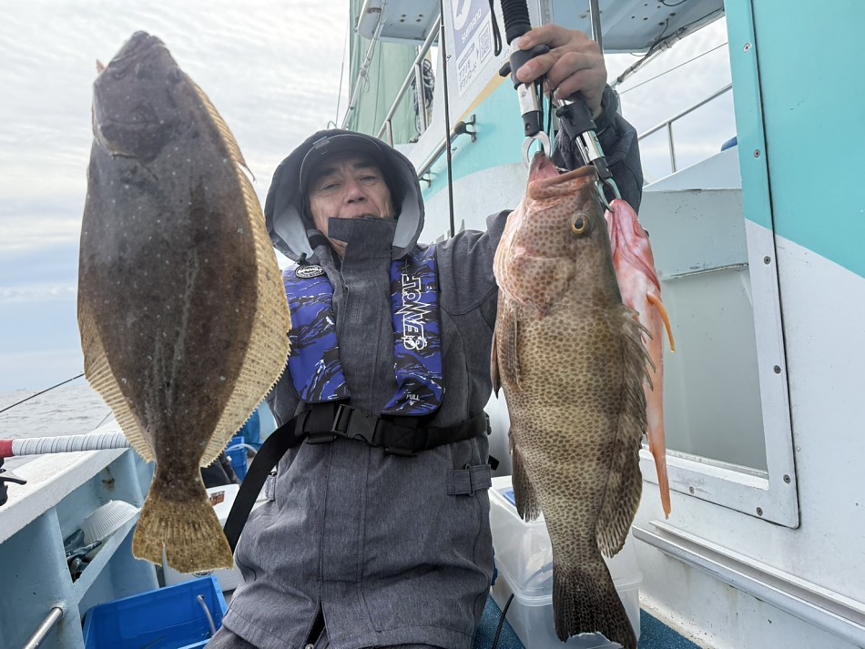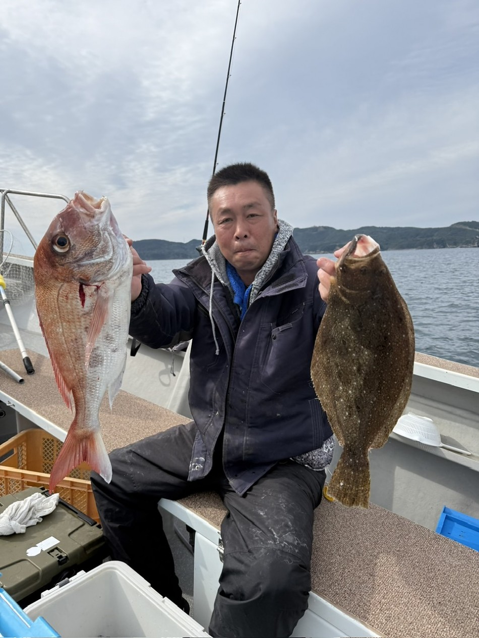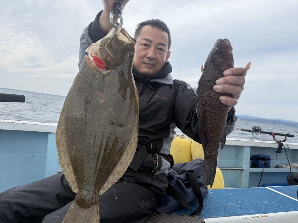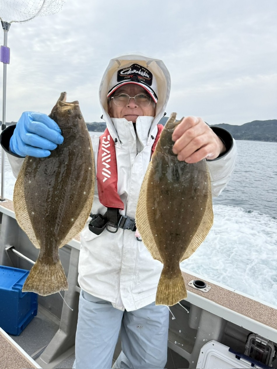今日のヒラメ釣りは竿頭4枚が2名で船中22枚釣れました!後半にベイト反応発見で、サワラやシオ・カンパチ・大ハマチや真鯛など色々と釣れました!