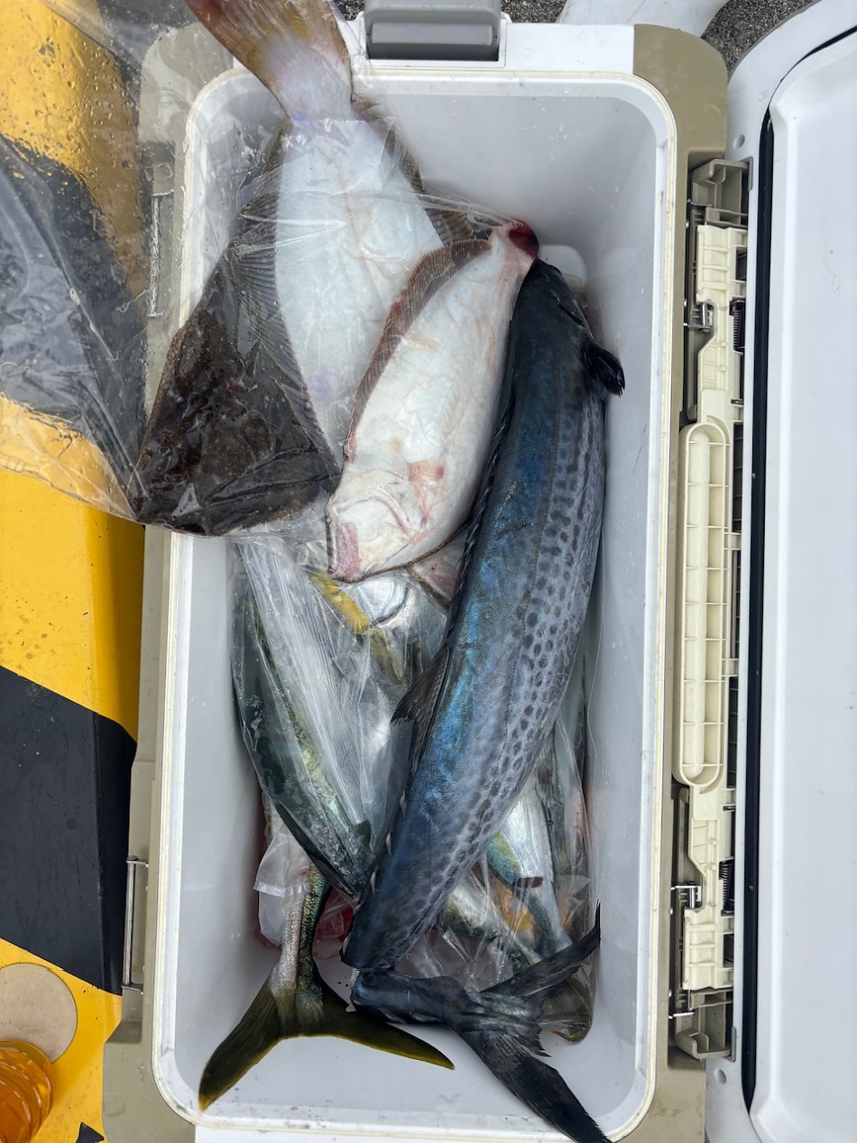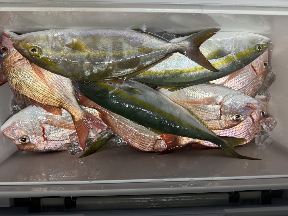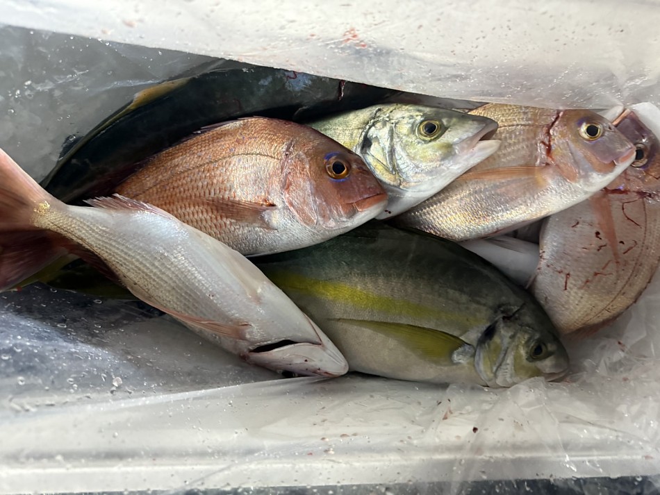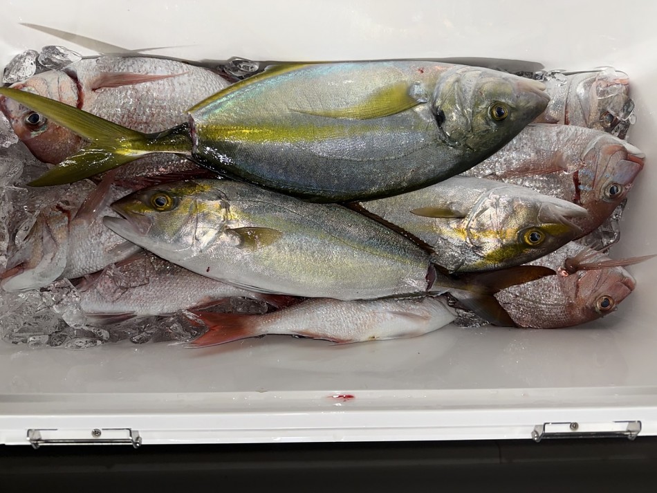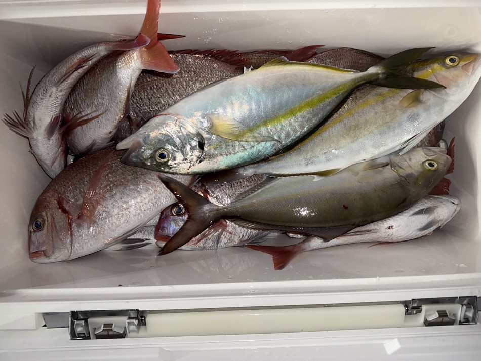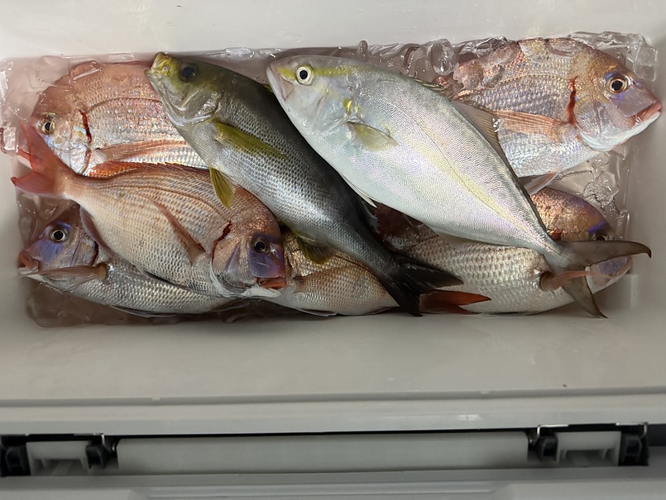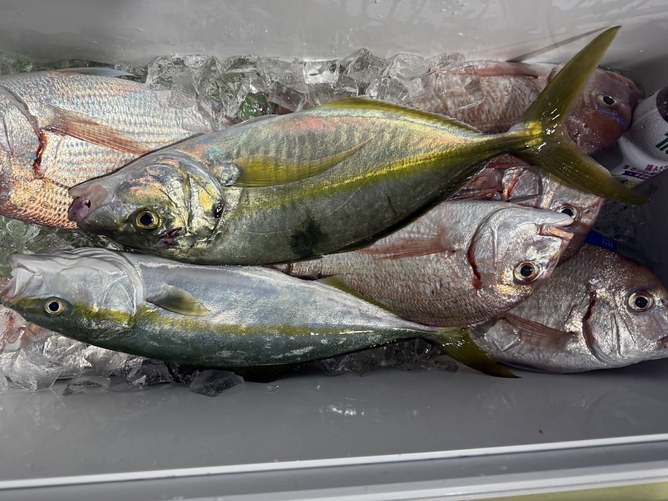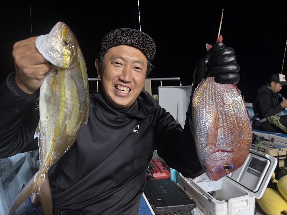 前半は鯛がポツポツと当たりありました!夕まずめに一瞬のジアイありシマアジ、カンパチ、シオ GET(^^)まだまだ行きますよ来週もまだまだ空きありです