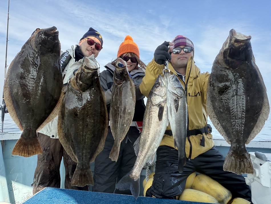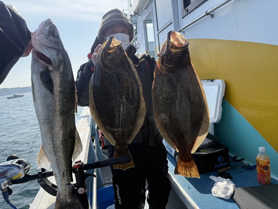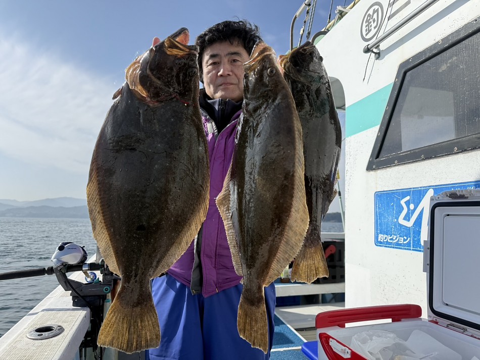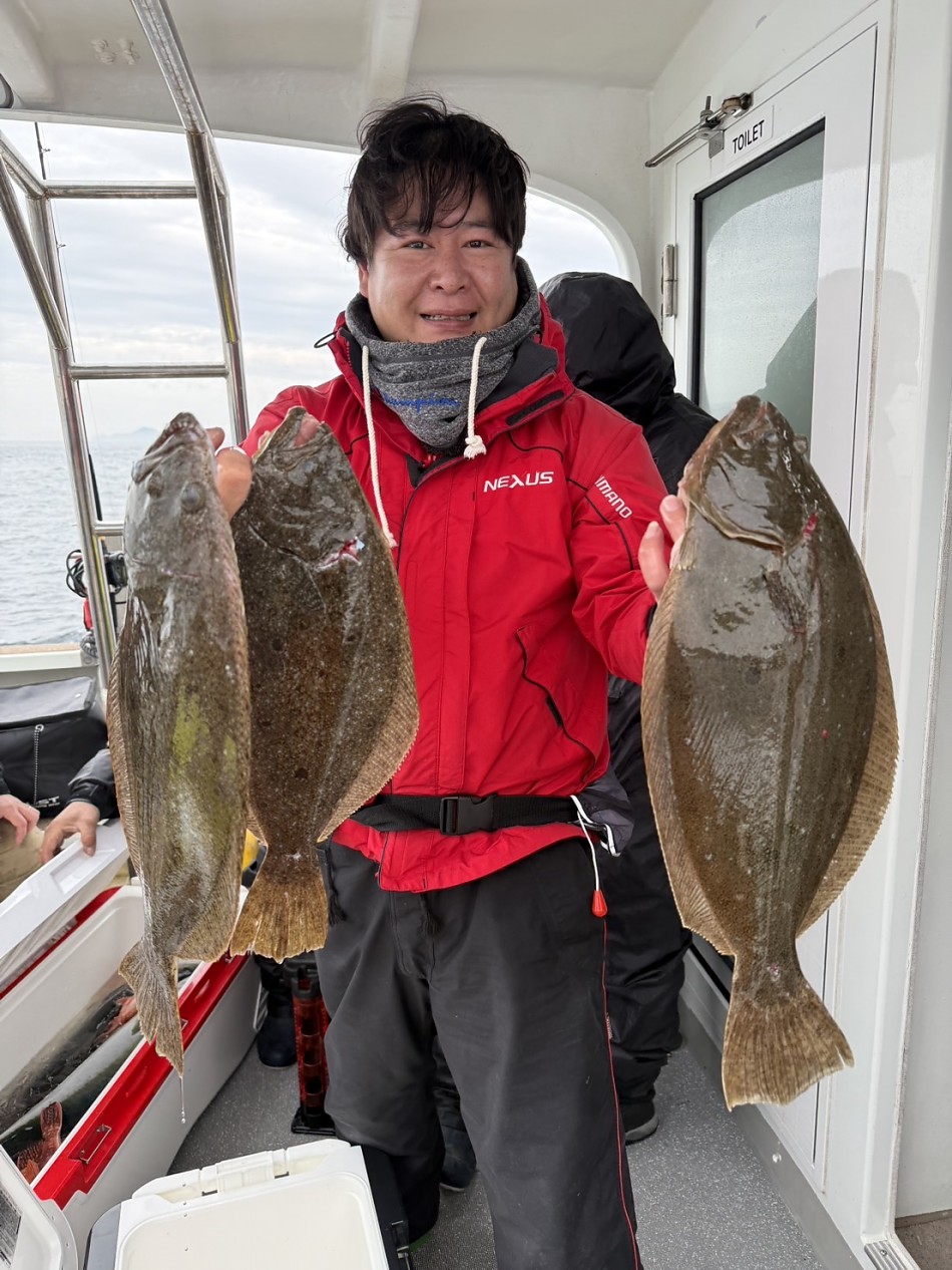 竿頭ヒラメ3枚ゲット!!で大型もあがりましたが、全体的に数は少なかったです。2月20日の午前便でヤリイカ釣り出船します!興味のある方ご予約お待ちしております!