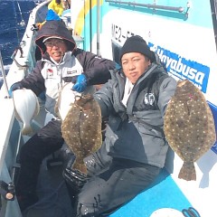 午前便ヒラメ釣りは絶好調!!3〜9枚釣れ大漁です!!午後便ウタセ真鯛はワラサの顔は見れませんでしたが鯛ハマチとお土産釣れました!!