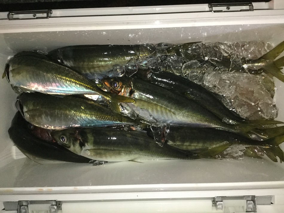 朝便はヒラメの他にサワラや青物喰わないかも見に行きましたが当たり少なかったです。数はあまり釣れなかったが上がれば良型のヒラメやツバスが釣れました!写真撮り忘れましたm(._.)m 午後からのアジ釣りは反応あるが仕掛けを入れると逃げてしまい喰わない。たまに当たっても青物に喰われ上がらず。そのあと夕まずめにジアイあり良型のアジが当たりましたがまたも青物にブツブツ切られました。