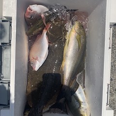 今日は真鯛が絶好調(^^)当たりたくさんありいい感じに釣れました!バレていったりハリス切れも結構あり。タテ釣りは色んな魚が釣れるのでいいですよね♪ 明日も出船しますまだまだ空き空きです。