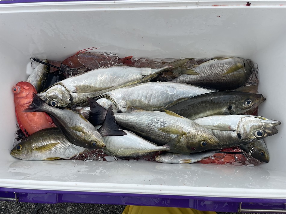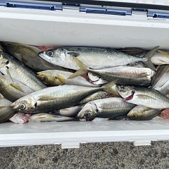 朝イチ大アジ当たりあり釣れました!口切れも多いですね。丸々サバも何本かGET!後半イサキもGETでいい感じに釣れました(^^)今日は初めて見た魚イッテンアカタチ!いらないとのことだったのでお家で煮付けにして食べてみました(^^)