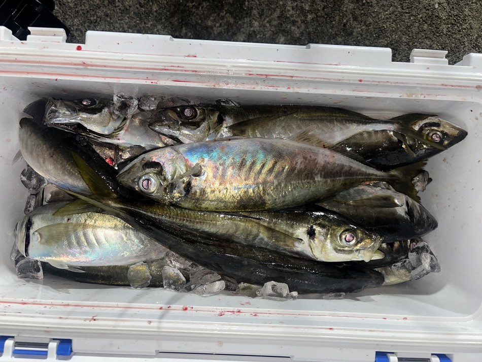 今日は日中からアジが釣れて竿頭様は30匹程(^-^)v うちにもおかず頂きました ♪ 脂のっててめちゃくちゃ美味しいですね!またお願いしますm(_ _)m 笑