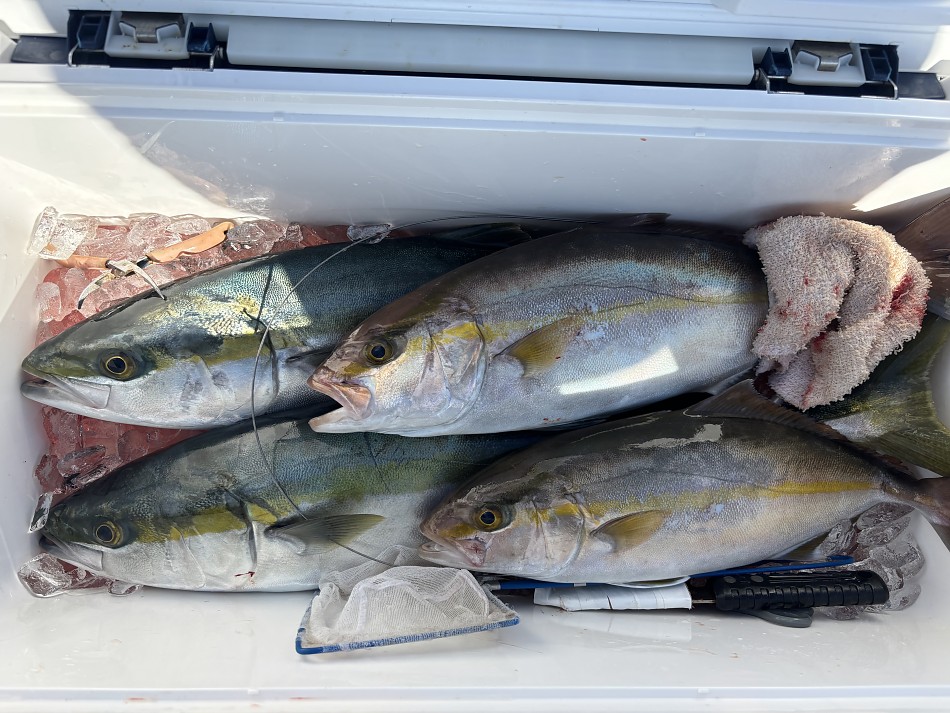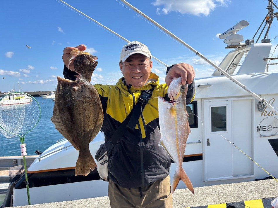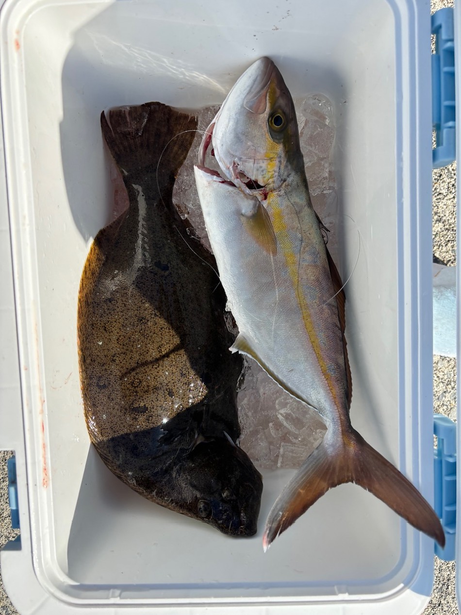 当たれば大物!ヒラメやブリ、真鯛、サワラ、スズキなど色々釣れました(^^)入れ喰いジアイあり青物は皆様 GETブリ3本最大8.5kgありました!!大ハマチ〜ワラサは船中24本ありハリス切れも多発