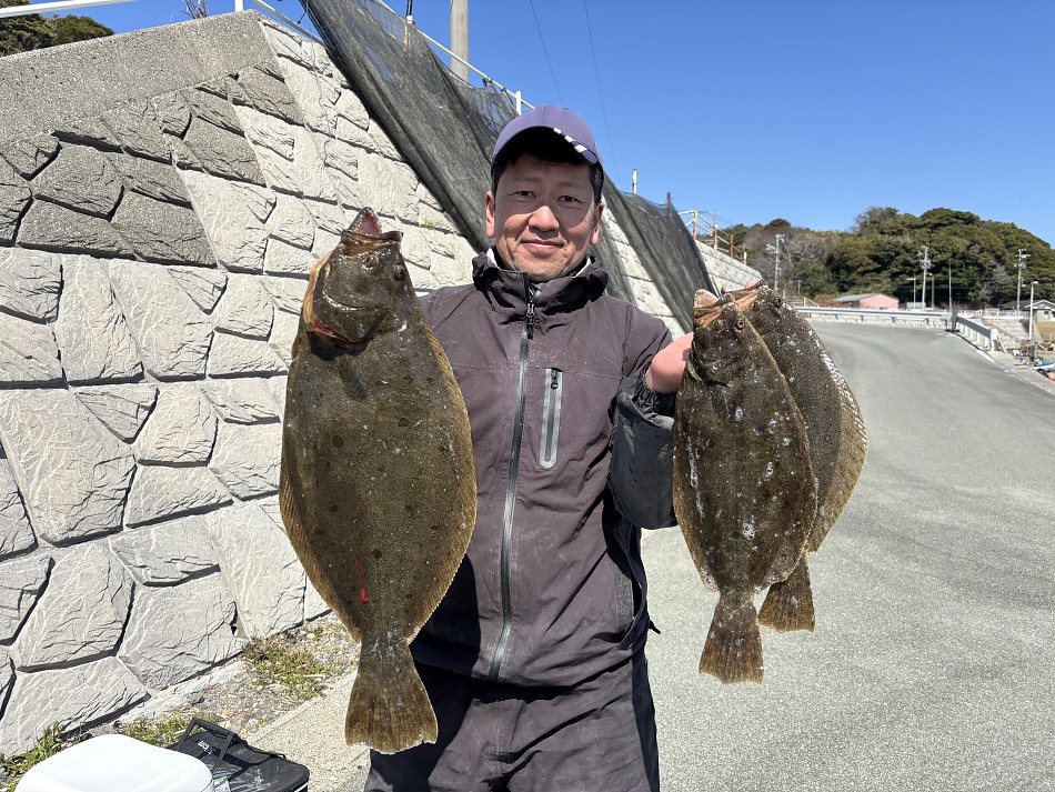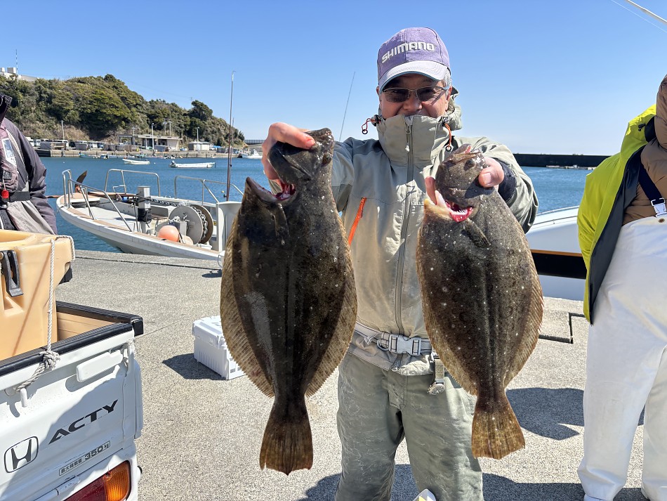午前便の泳がせ釣りはお客様2名でヒラメと真鯛が釣れました!午後からのアジ釣りは夕まずめから釣れだしたので残業して大アジ釣れました!