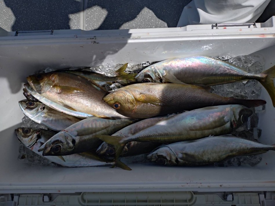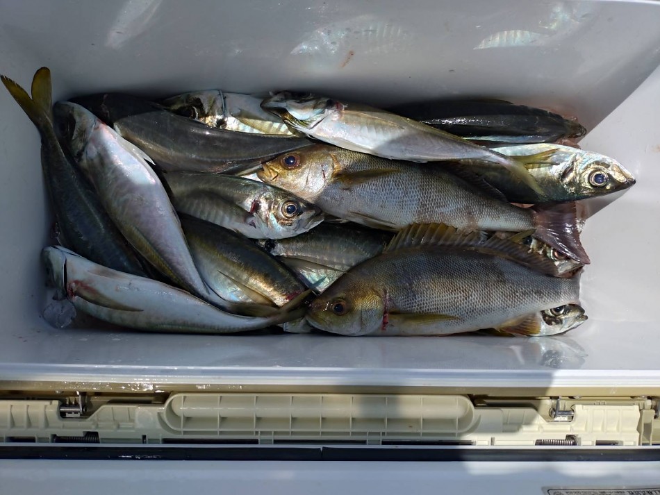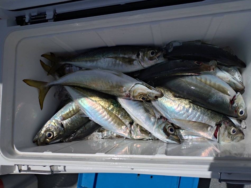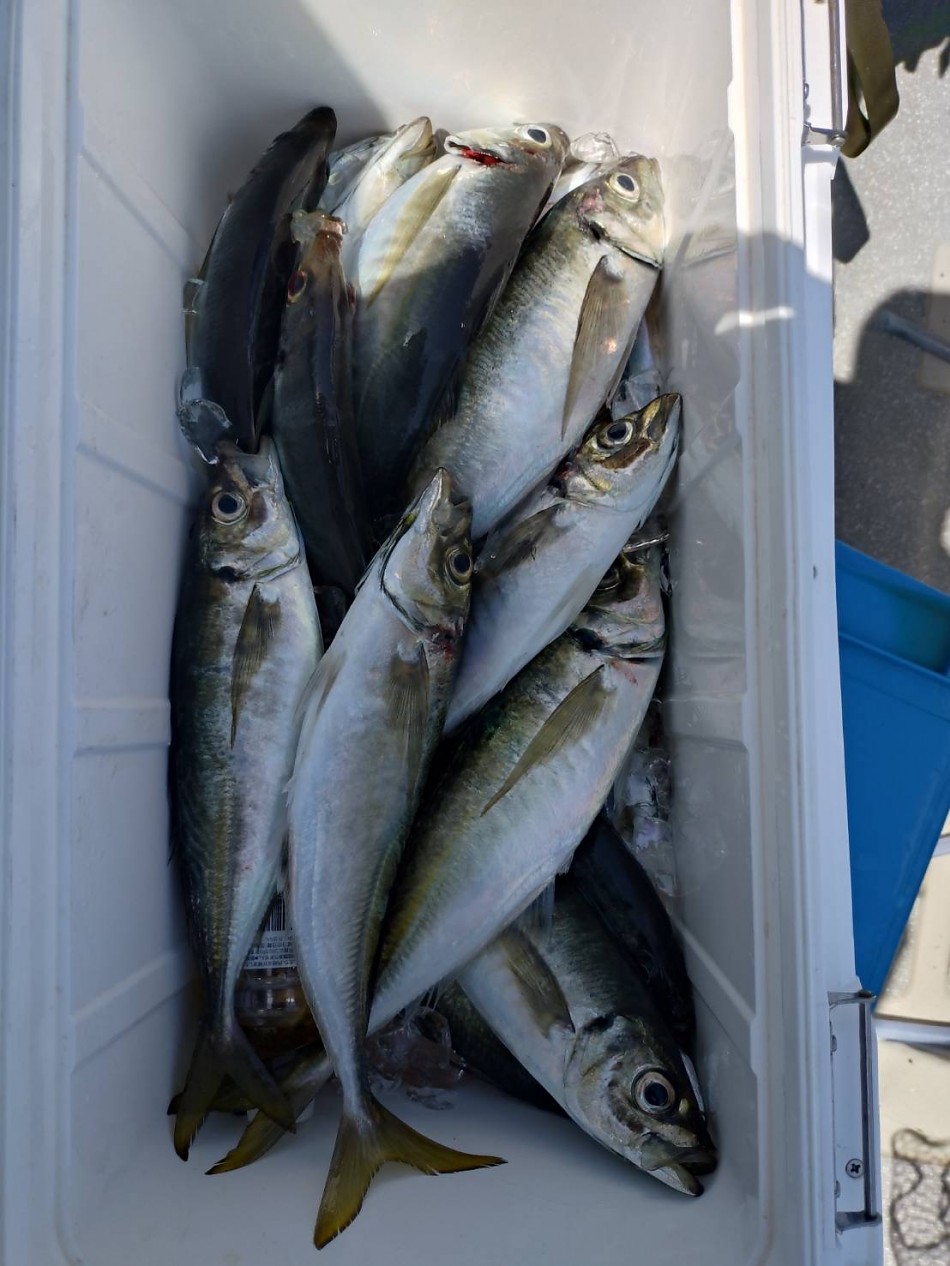 今日は日中からアジが釣れて竿頭様は30匹程(^-^)v うちにもおかず頂きました ♪ 脂のっててめちゃくちゃ美味しいですね!またお願いしますm(_ _)m 笑