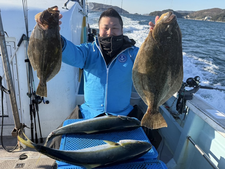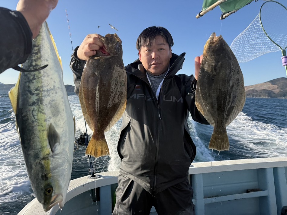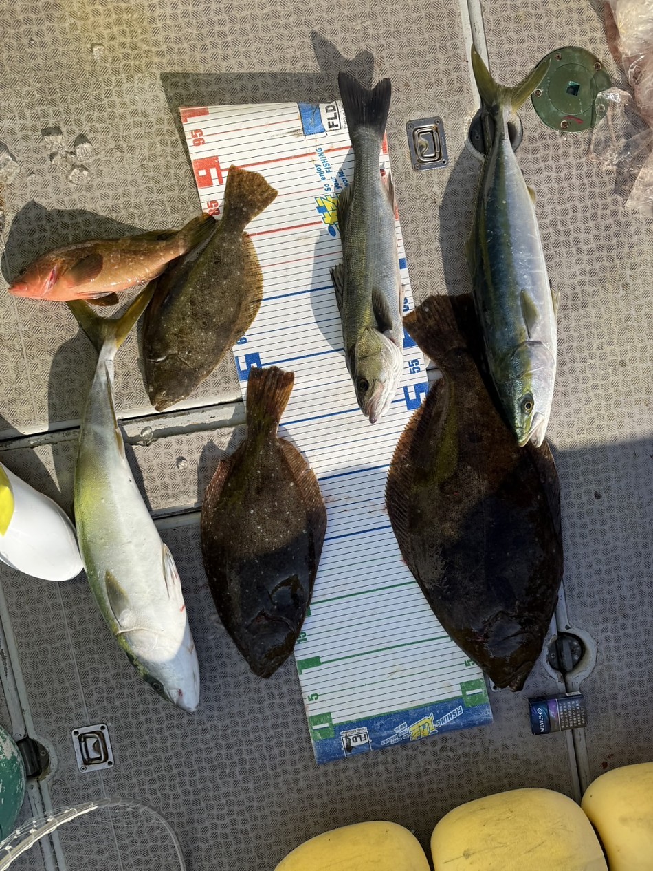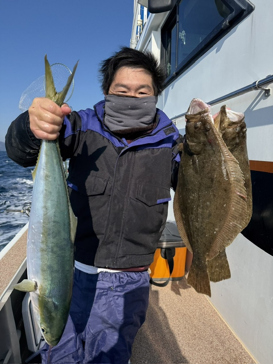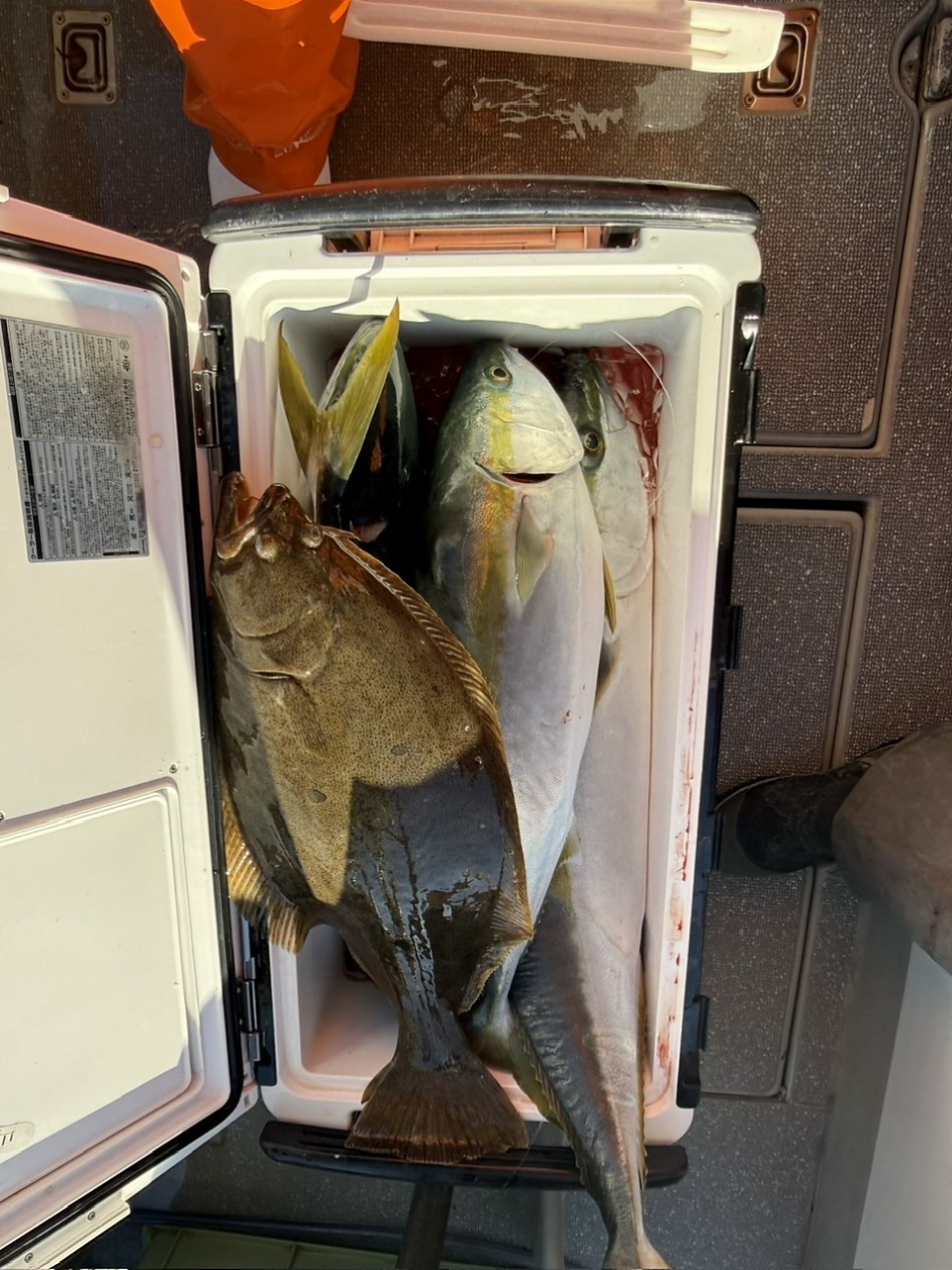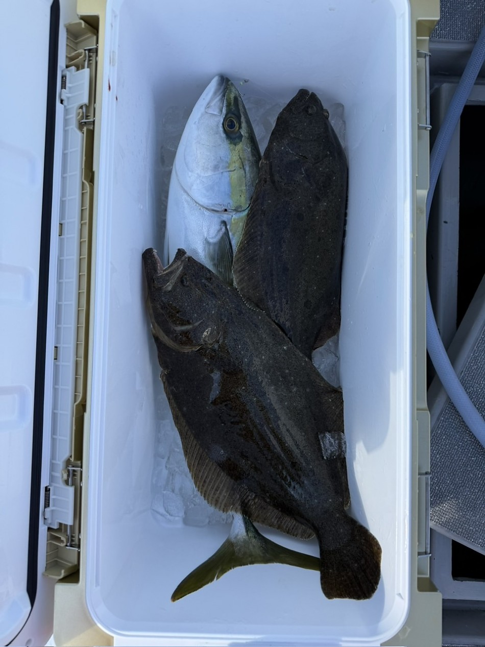 今日はヒラメや青物で絶好調です(^^)ヒラメ竿頭5枚船中27枚!ブリやワラサも釣れました!!チャンスがあれば少しでも確実にとれるようにpeラインの確認やリーダー付け忘れずお願いします。明日も出船まだまだ空き空きですよろしくお願いします。