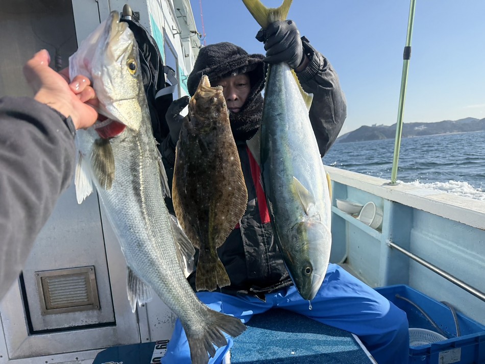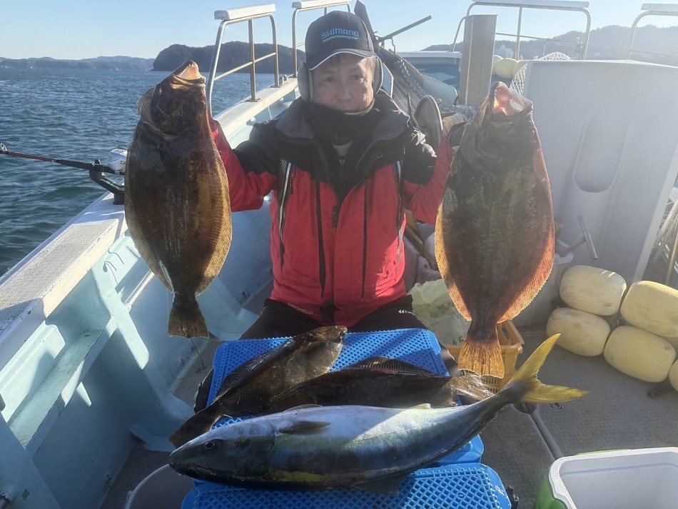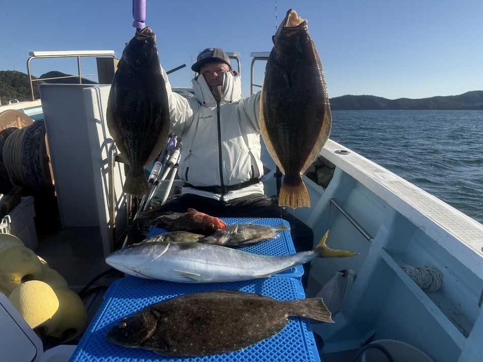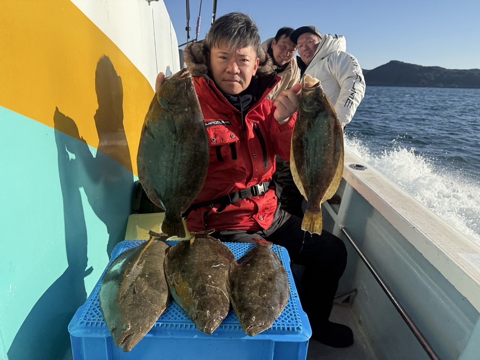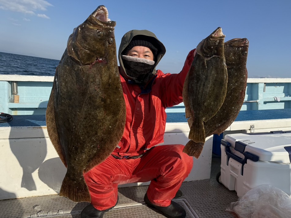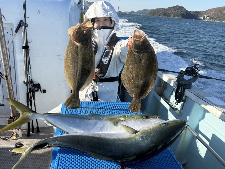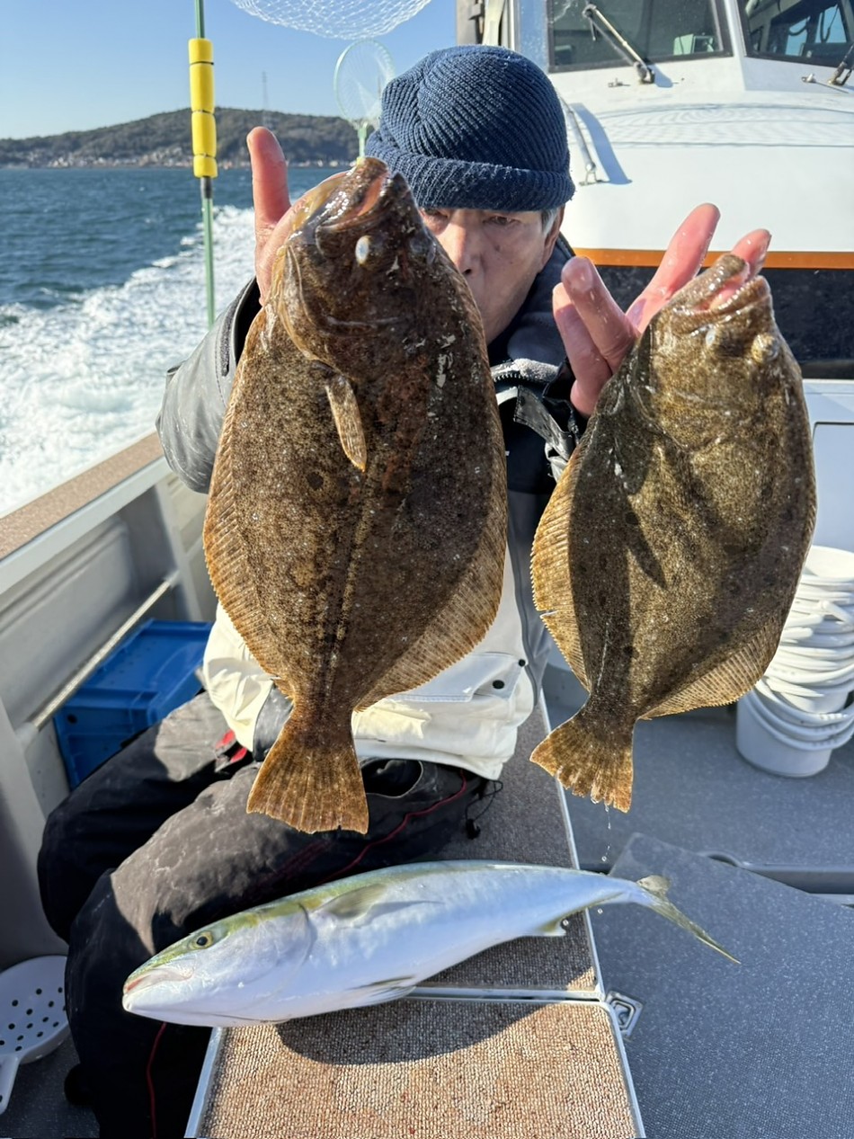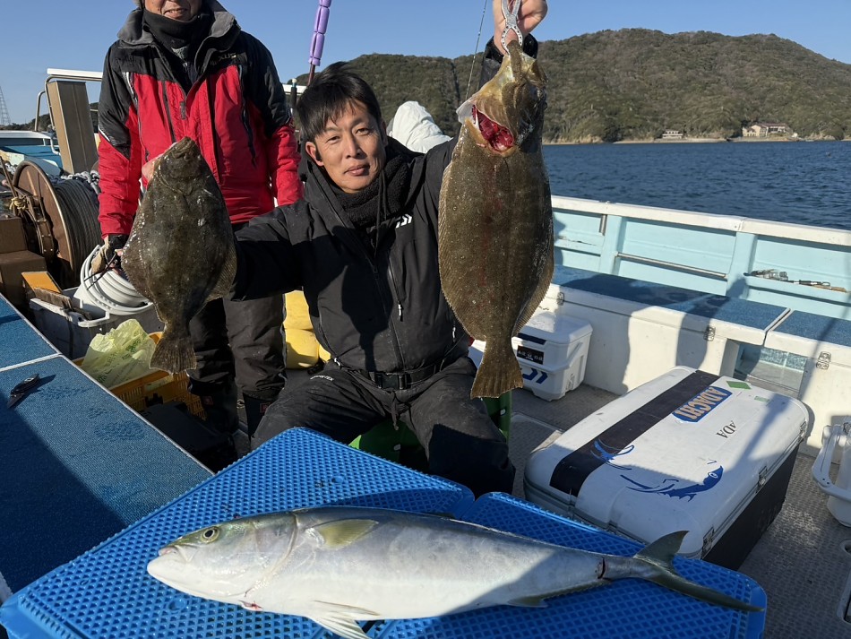 今日はヒラメや青物で絶好調です(^^)ヒラメ竿頭5枚船中27枚!ブリやワラサも釣れました!!チャンスがあれば少しでも確実にとれるようにpeラインの確認やリーダー付け忘れずお願いします。明日も出船まだまだ空き空きですよろしくお願いします。