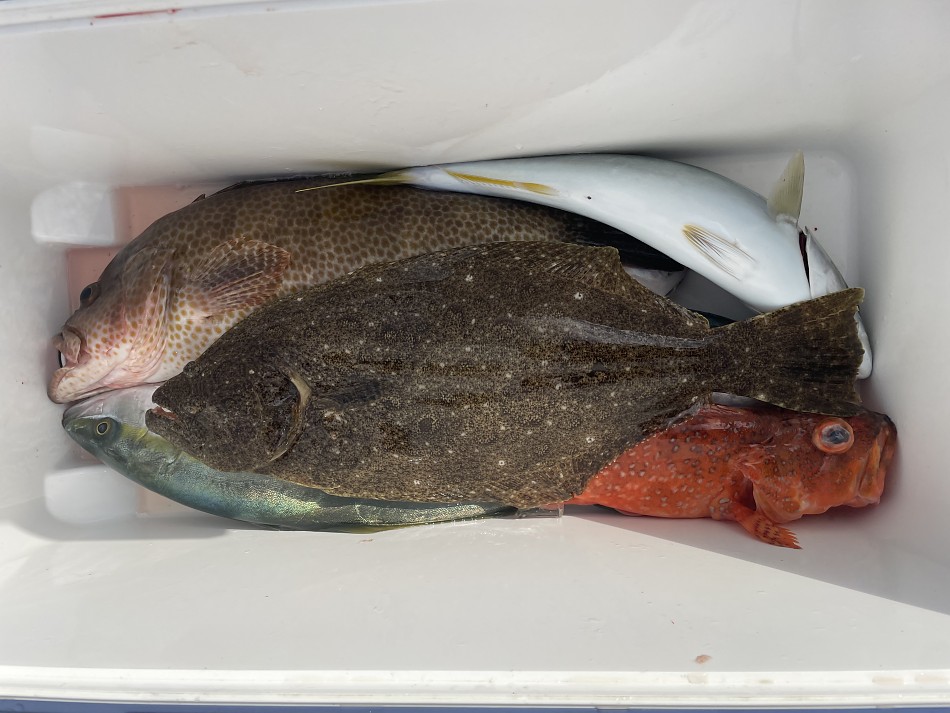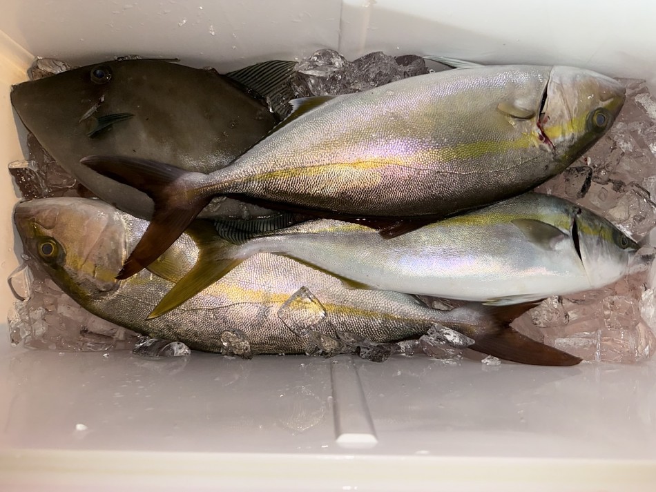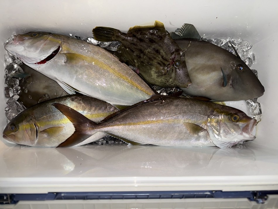 潮が澄んでいるのが原因か反応あるが鯛全然口使わず。なんたか最後の夕まずめにプチジアイありシマアジやカンパチ、シオ、良型真鯛などが釣れました(^^)