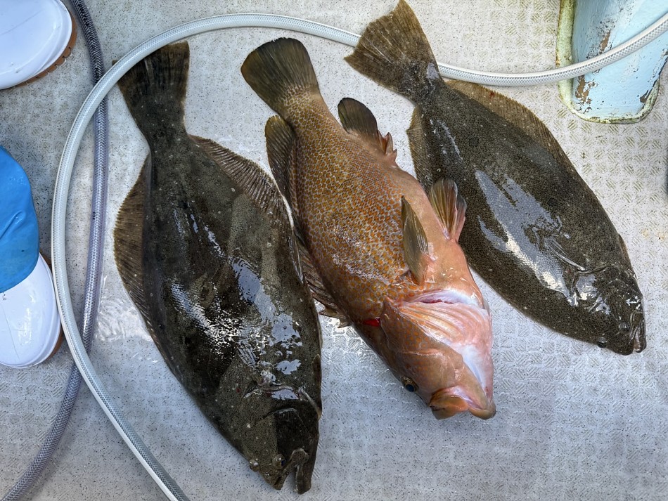竿頭4枚船中14枚でした(^^)昨日は風ありでしたが湾内なので波なく全然釣りできましたがベイトの反応悪く当たりが少なかった。ヒラメやキジハタが上がった。