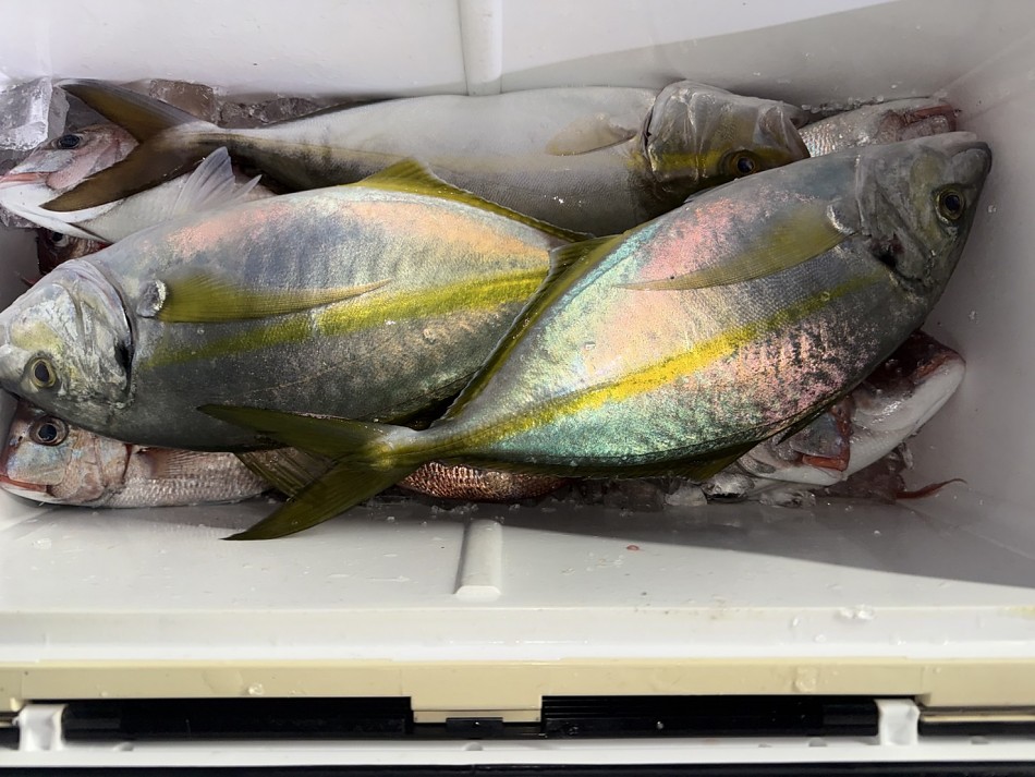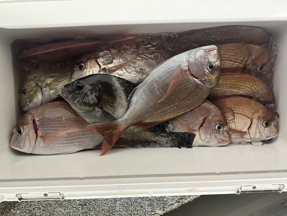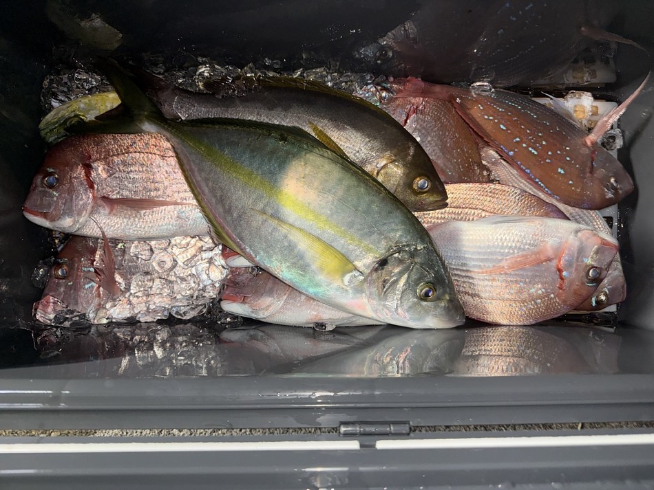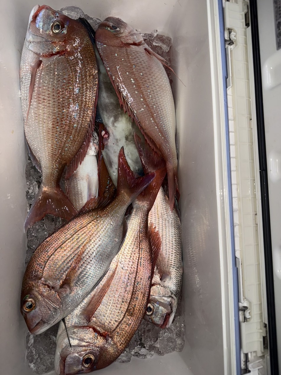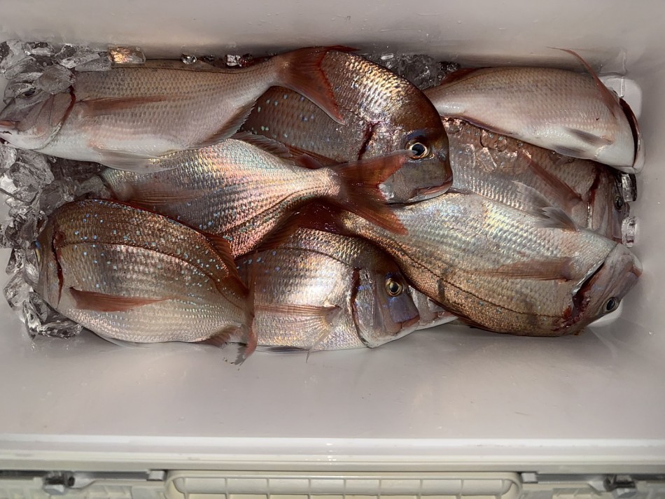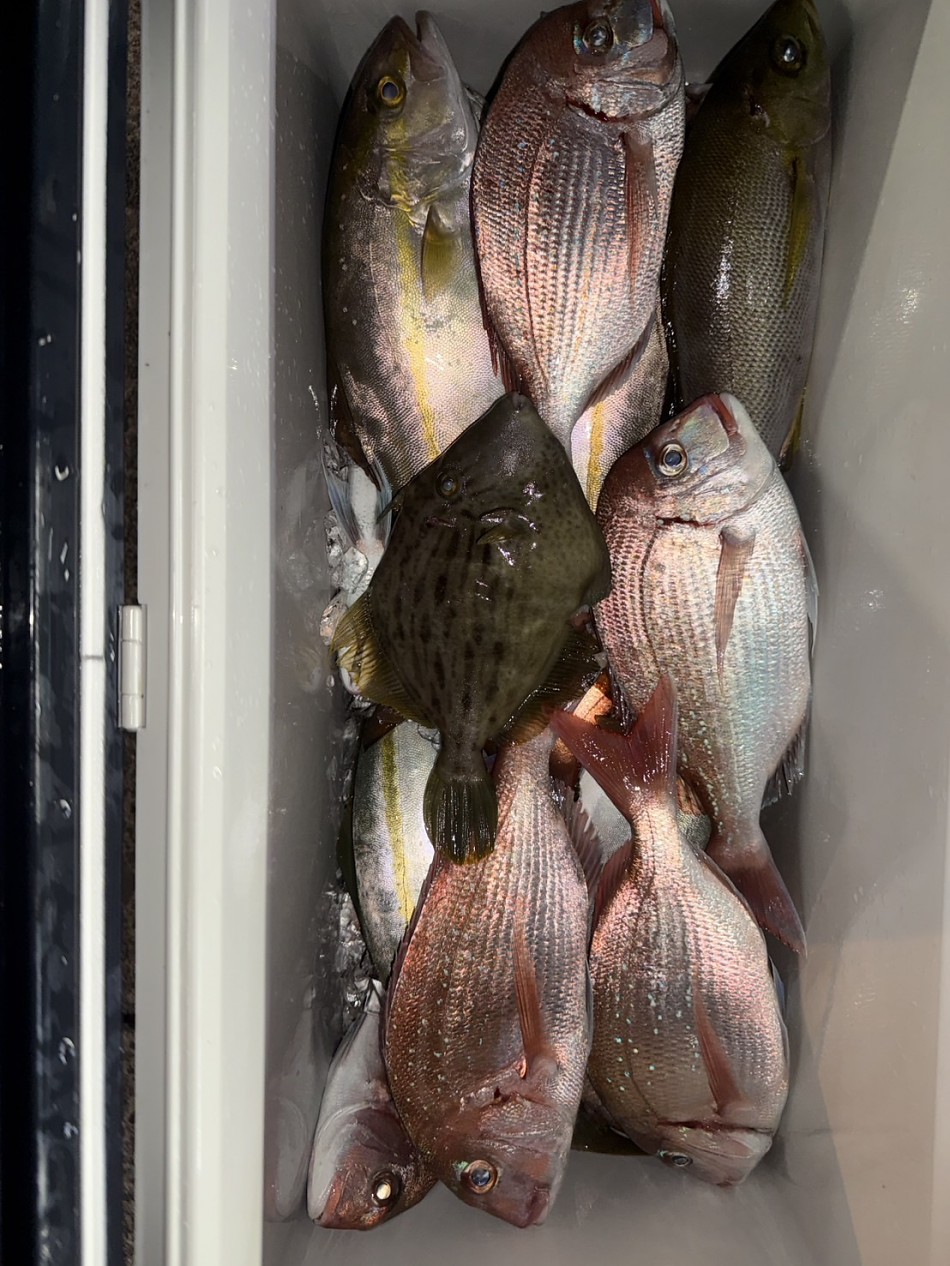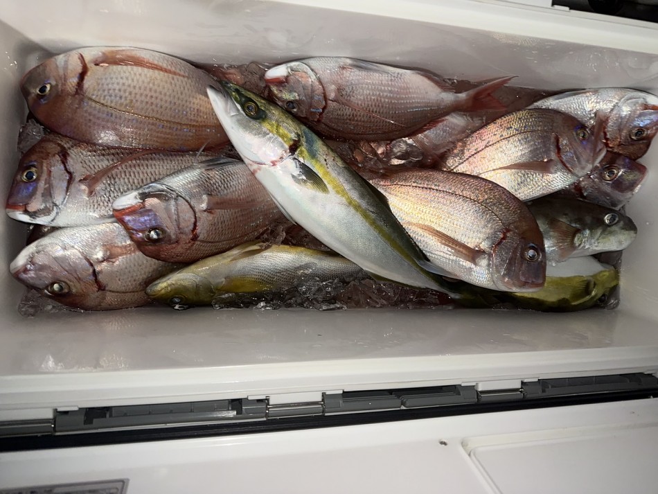 今日のヒラメ釣りは竿頭4枚が2名で船中22枚釣れました!後半にベイト反応発見で、サワラやシオ・カンパチ・大ハマチや真鯛など色々と釣れました!