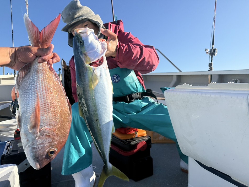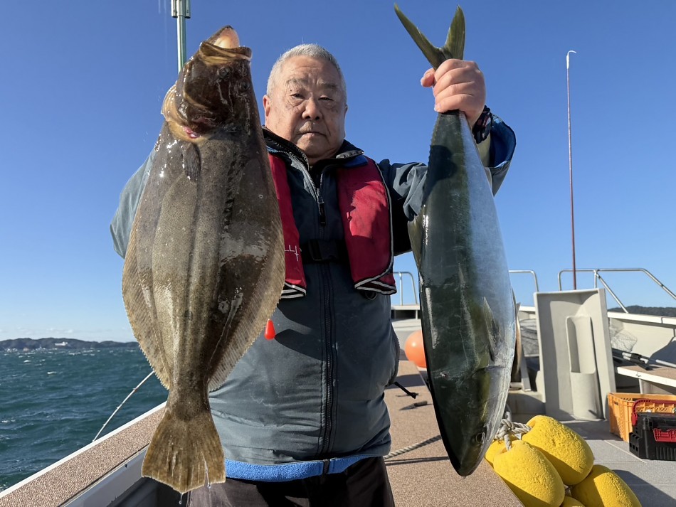 ヒラメやブリ、ワラサ、サワラ、真鯛、スズキなど色々釣れました(^^)青物1〜5本船中26本上がりました!ハリス切れやバレていくのも多かったです。写真2船合わせてたくさんあるので分けて更新